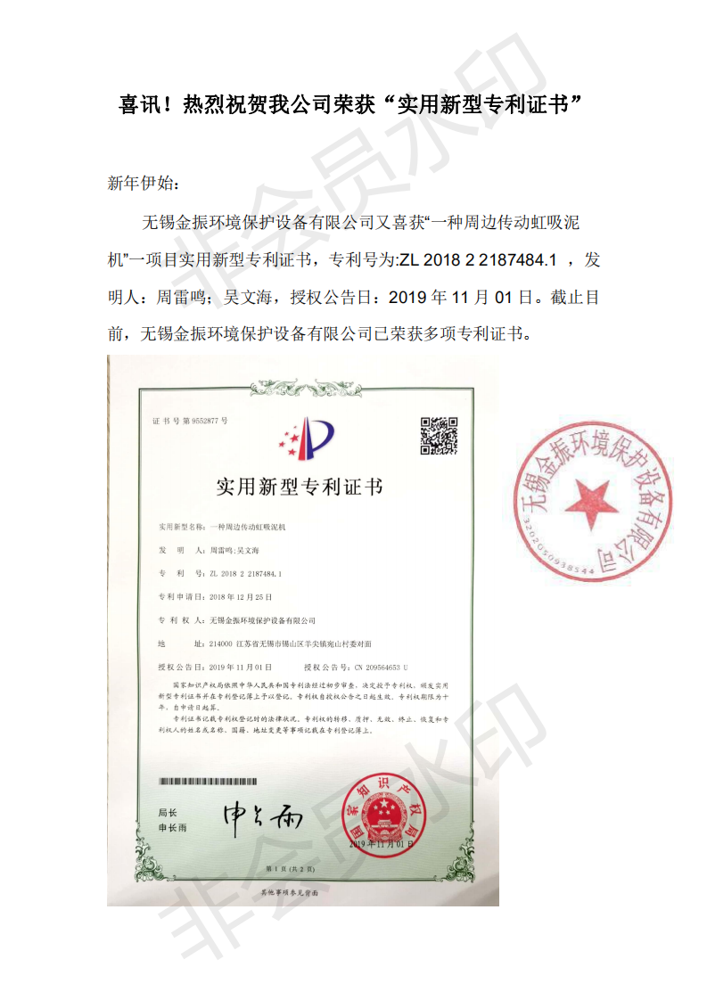 首頁新聞中心金振動態(tài) 〉喜訊!熱烈祝賀我公司榮獲“實(shí)用新型專利證書”