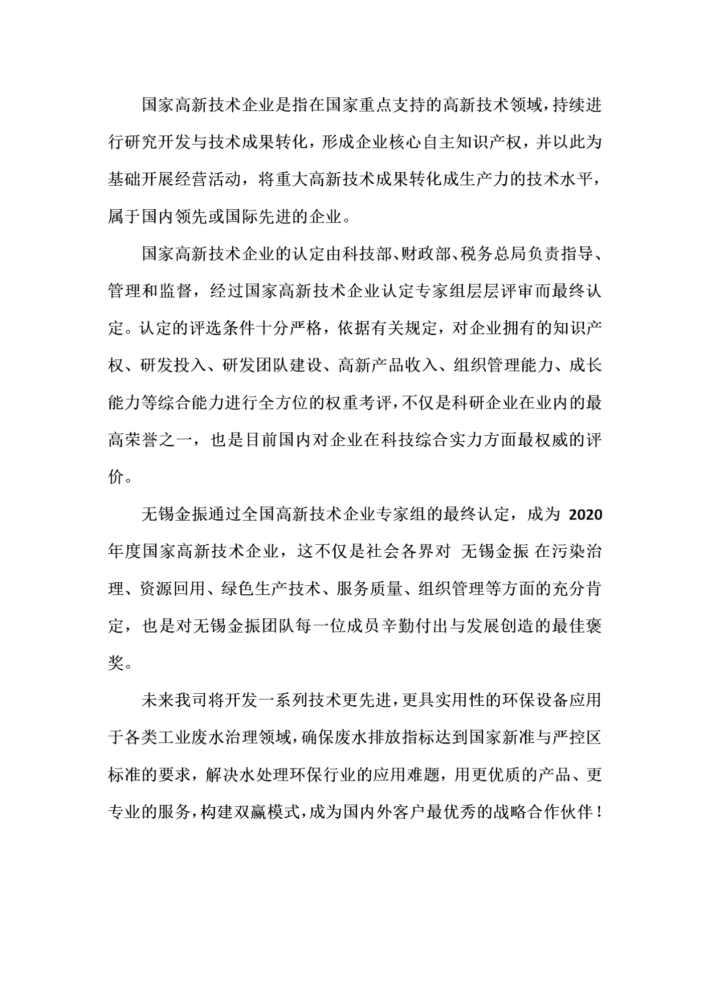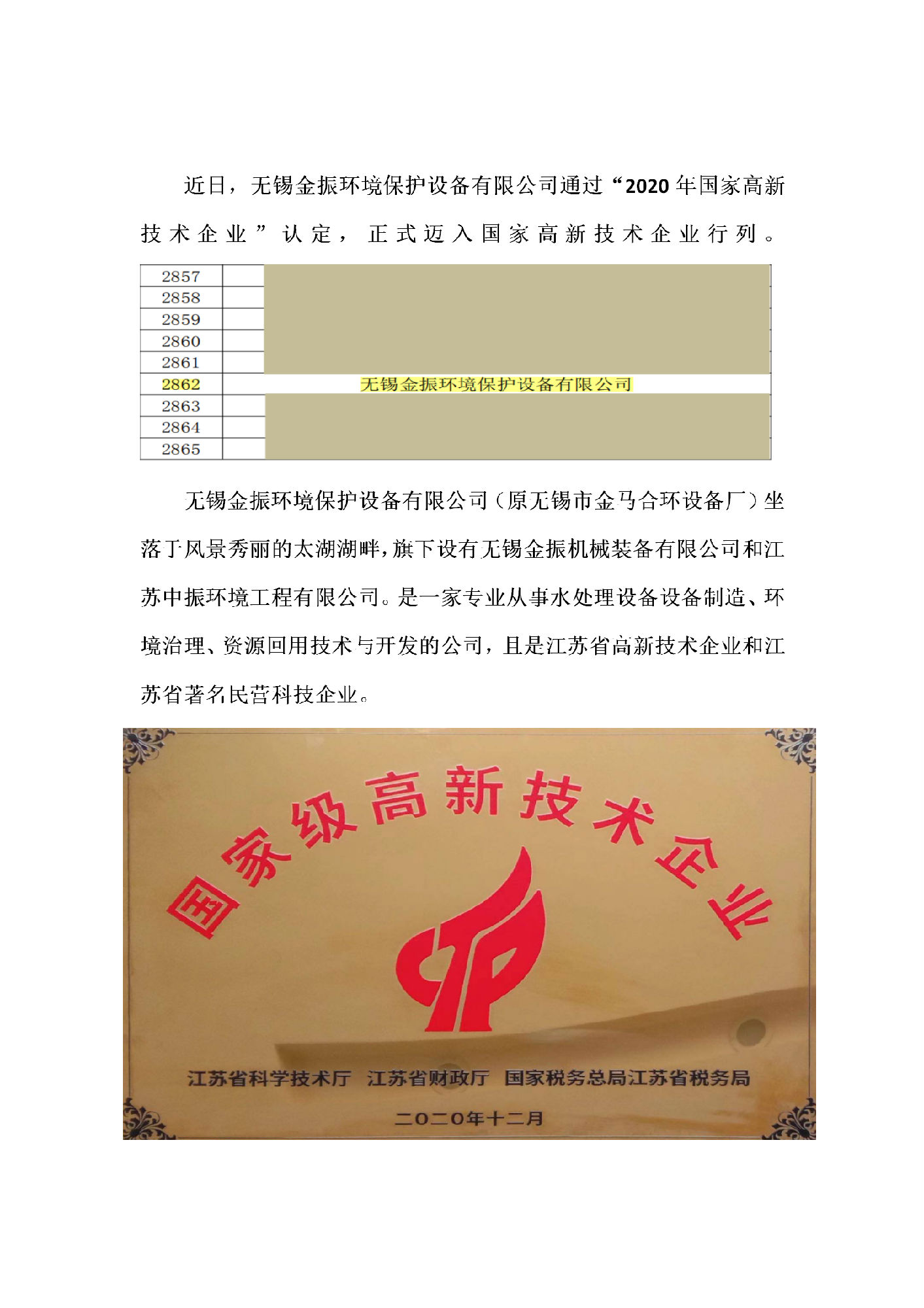 喜報(bào)!無錫金振 榮獲“2020 國家高新技術(shù)企業(yè)”認(rèn)定