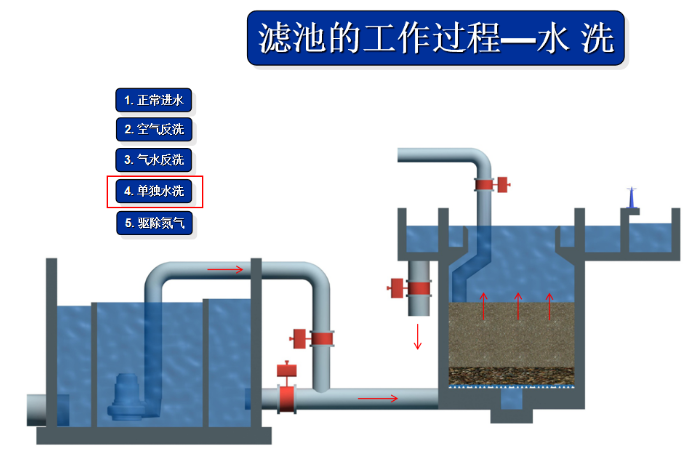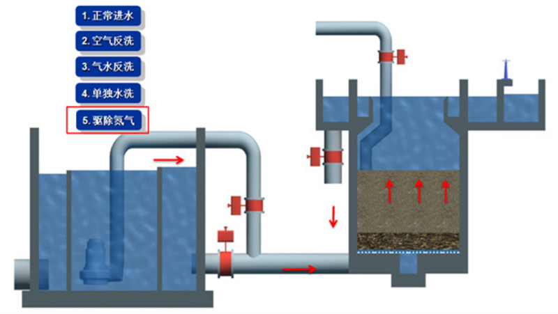 ◆反硝化深床濾池反沖洗:采用氣水聯(lián)合沖洗的方式;