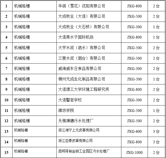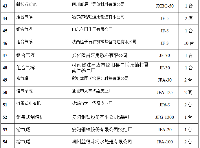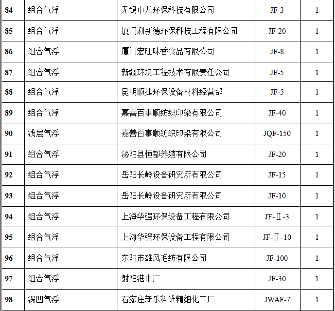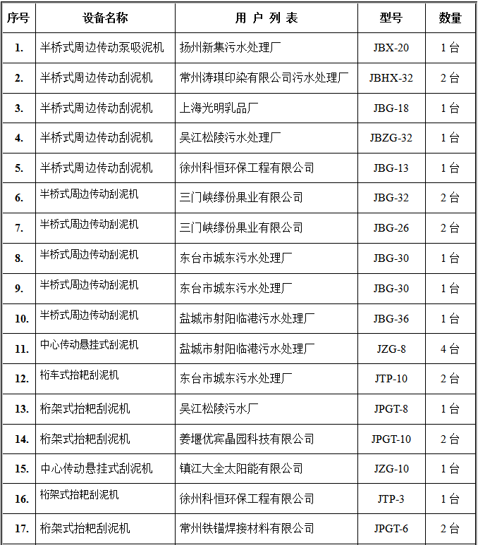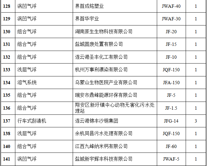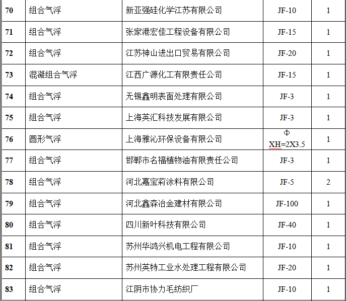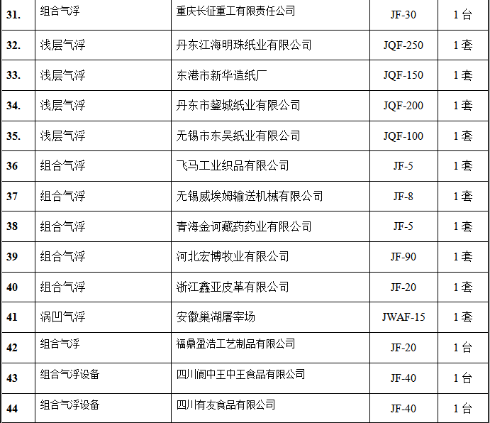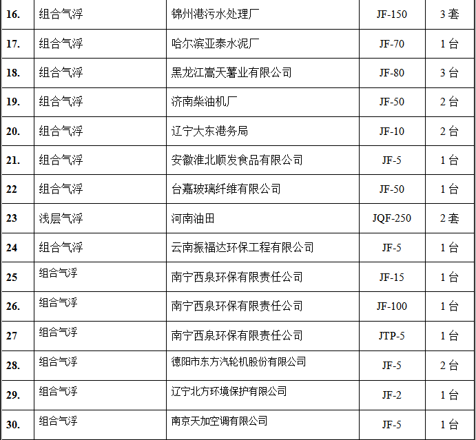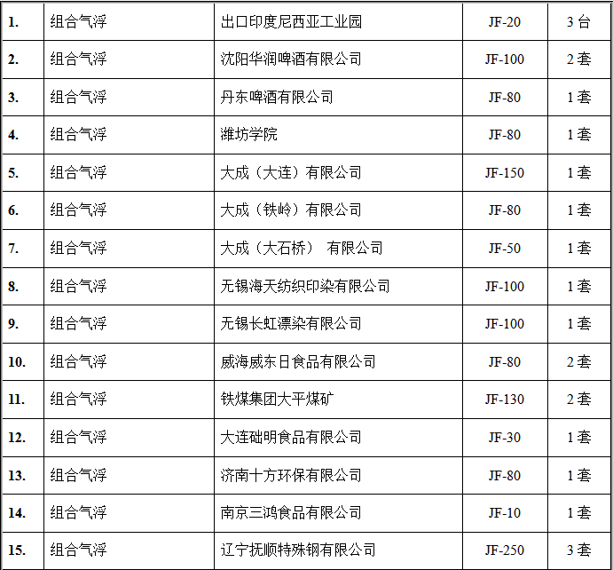 氣浮設(shè)備部分客戶(hù)業(yè)績(jī)表