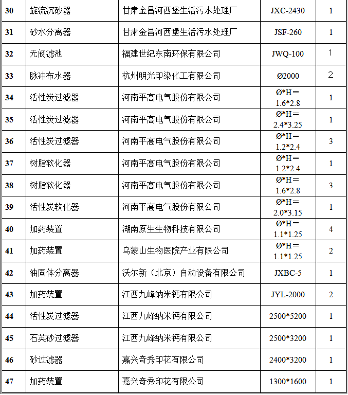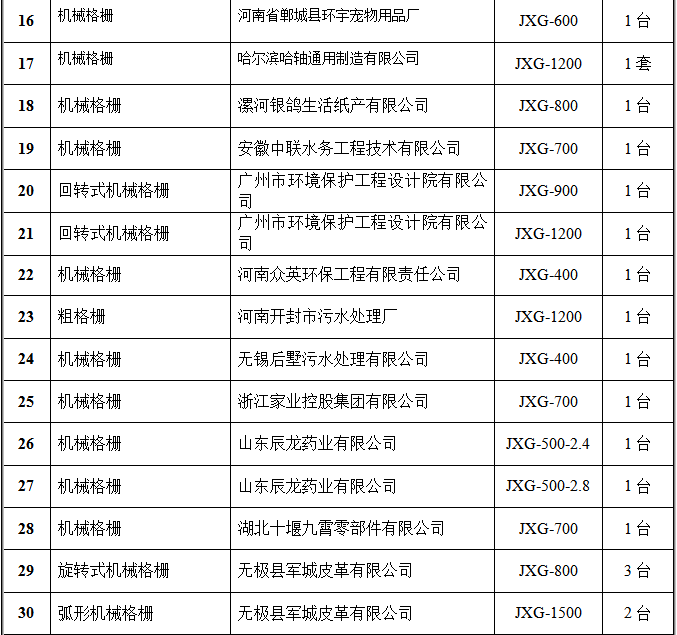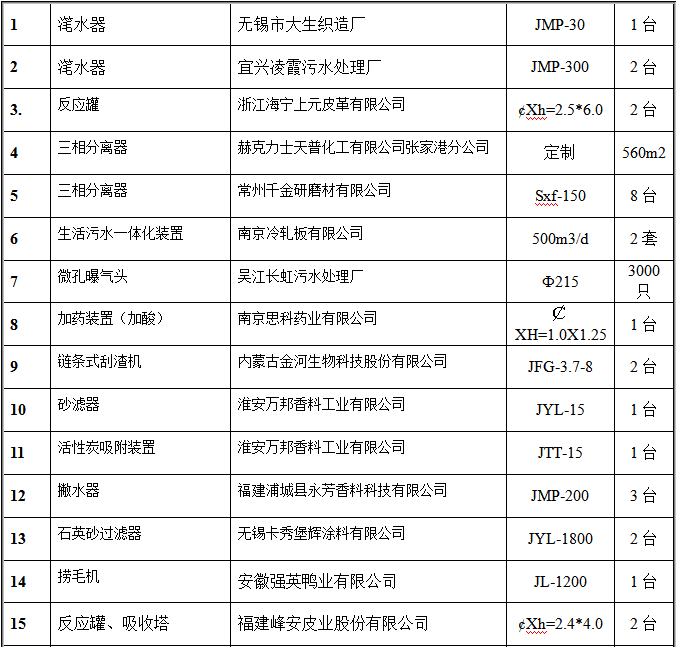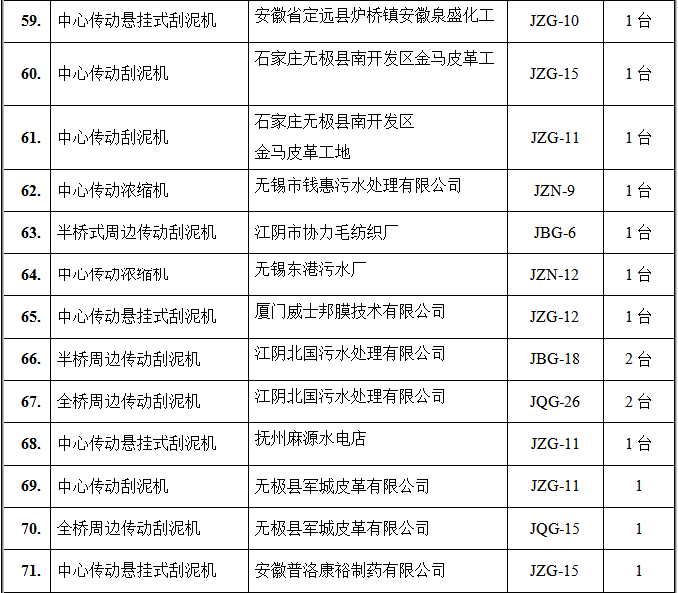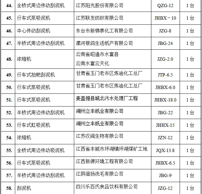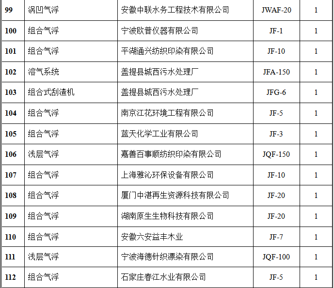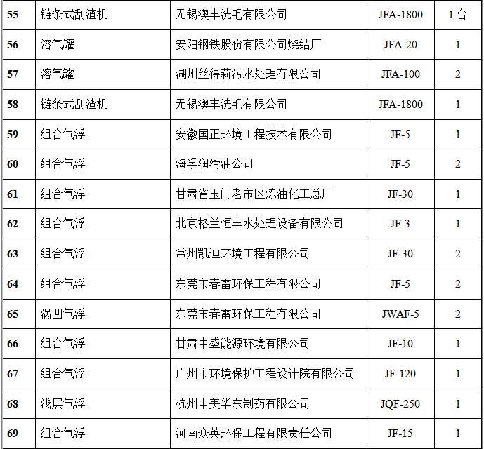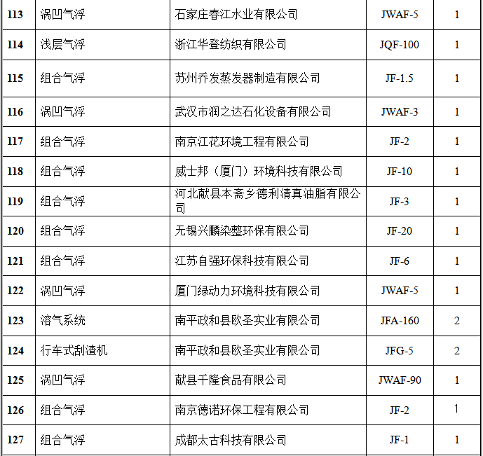 氣浮設(shè)備部分客戶(hù)業(yè)績(jī)表